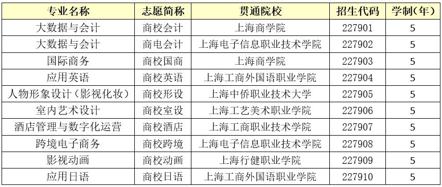 2022年上海市商业学校填报志愿招生代码信息公布(图)随迁子女批次-随迁子女中高职贯通