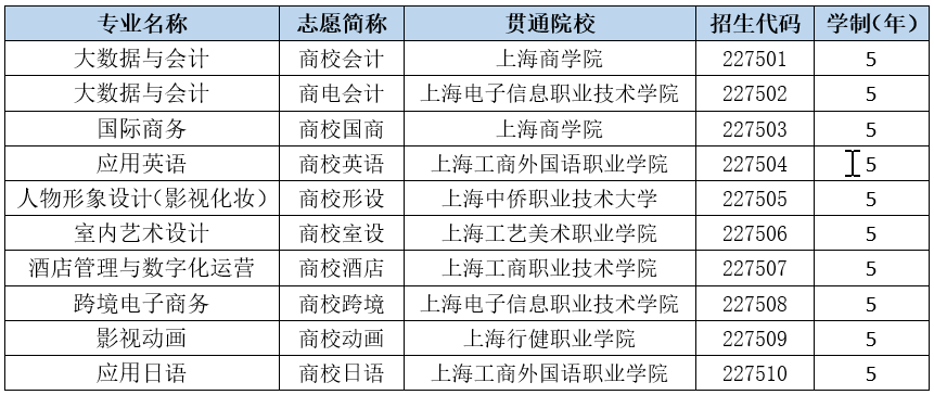 2022年上海市商业学校填报志愿招生代码信息公布(图)自主招生批次-中高职贯通
